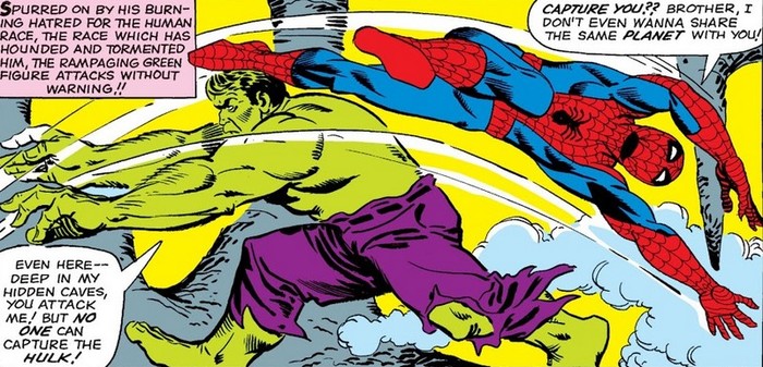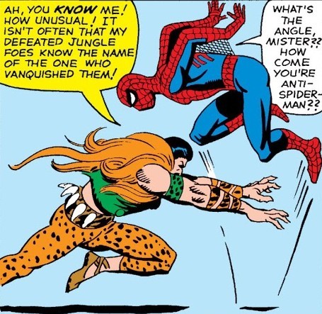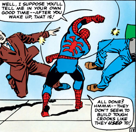 Есть в комиксе и вторая история, потому что не всё же роботов-ноунеймов ломать. Человек-Паук видит, что Человек-Факел из Фантастической Четвёрки затеял вечеринку – и решает нагрянуть и доказать, что он круче. Да, вот так ни с того ни с сего. «Эй, Джонни Шторм, ты лох, чмо и тварь дрожащая, а я – Невероятный Человек-Паук!!!». И начинается сражение. Просто так, потому что почему бы и нет. А заканчивается – на пляже, где отдыхают остальные участники Фантастической Четвёрки. В прошлый раз Спайди их размотал, но теперь против всех четырёх выходить не хотелось бы…впрочем, Факел побеждает его в одиночку. Остальные участники Четвёрки ведут себя дружелюбно, но Человеку-Пауку кажется, будто они над ним насмехаются, поэтому он огрызается. Мол, «А фигли вы смотрите на меня с таким снисхождением, а? Думаете, я лох, чмо и тварь дрожащая, а вы – Могучие Герои Земли? Да вы никто! Да я вас всех труба шатал и калитка хлопал! Да я…». Тираду бугуртящего Паука прерывает Невидимая Девушка, подкравшись сзади и сбив его с ног (Паучье Чутьё не сработало, потому что она не представляла для него угрозы). Невидимочка заставляет Человека-Паука и Человека Факела пожать друг другу руки – но в итоге Спайдер-Мудак сваливает, тявкнув напоследок, что из- всей Четвёрки только Невидимочка и не является лохом, чмом и тварью дрожащей. Да, иногда герои ведут себя, как мудаки.