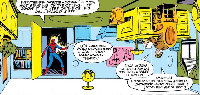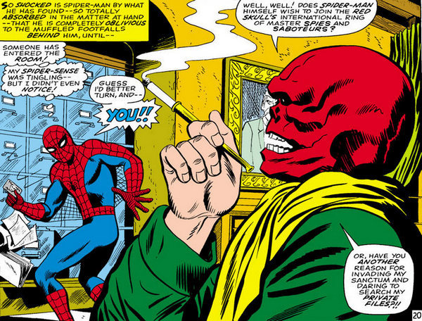 А не пора ли поднять ставки? Ящетаю, пора. Так что вперёд – к комиксу The Amazing Spider-Man #5. Дж. Джона Джеймсон публикует очередную статью, демонизирующую Человека-Пауку, и чтобы отвести от себя подозрения, Питер Паркер тоже негативно высказывается о Человеке-Пауке (чем настраивает против себя Флэша Томпсона и немалую часть одноклассников). А между тем Доктор Дум, в очередной раз получив по голове от Фантастической Четвёрки, тоже видит эту статью и думает, что раз этого Человека-Паука так описывают, он, наверное, та ещё мразь…а значит, сможет стать партнёром для захвата мира и уничтожения Фантастической Четвёрки! Доктор Дум посылает сигнал, который может уловить только Паучье Чутьё, и предлагает Человеку-Пауку заключить союз. Разумеется, Спайди отказывается – и следует драка, которая заканчивается ничьей, драчующиеся расходятся.