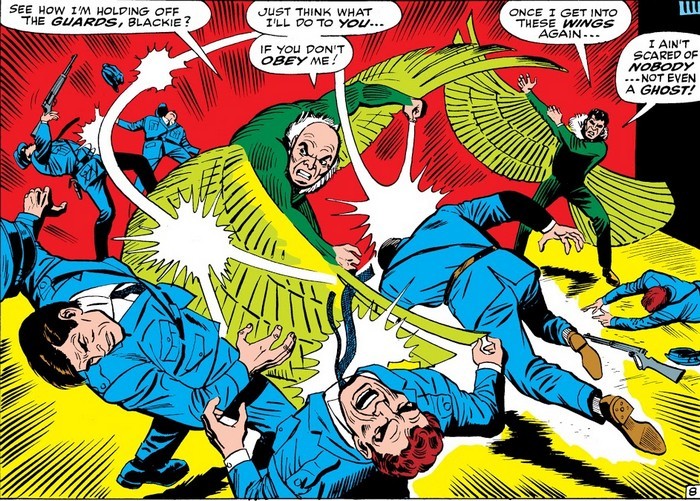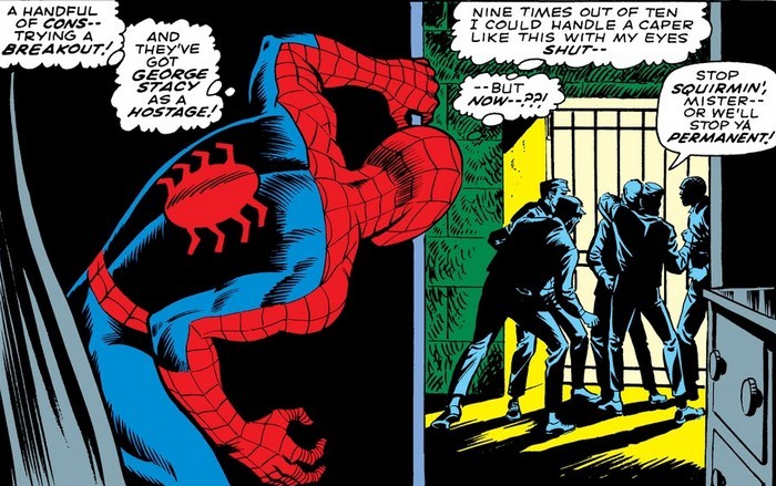 Стервятник нападает на редакцию Дэйли Бьюгл и требует, чтобы ему отдали все деньги компании. Питер, пришедший обменять фотографии крылатого бандита на рисунки мёртвых президентов, тайком переодевается в Человека-Паука – и сражение со Стервятником продолжается по всему офису Дэйли Бьюгл. Вы когда-нибудь пробовали поймать забравшуюся в дом птицу, например, голубя? Тварь устраивает настоящий хаос, бьётся в стёкла, опрокидывает всё, что можно опрокинуть и неистово какает. А теперь представьте, что эта тварь – человеческого роста, да и тот, кто пытается её поймать, тоже деликатностью не отличается. В общем, Человек-Паук всё-таки выпинывает Стервятника на улицу и спутывает его крылья паутиной, после чего «крылатого» забирает полиция, а Джеймсон истерит о том, что два чёртовых психа разгромили его офис. Спайди ещё и подливает масла в огонь, заклеив главреду рот паутиной. А Питер подкатывает шары к секретарше, Бетти Брэнт…и довольно успешно, между прочим!