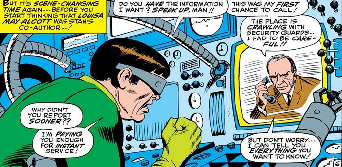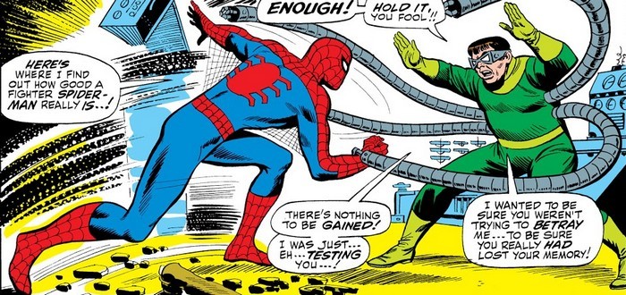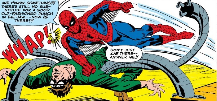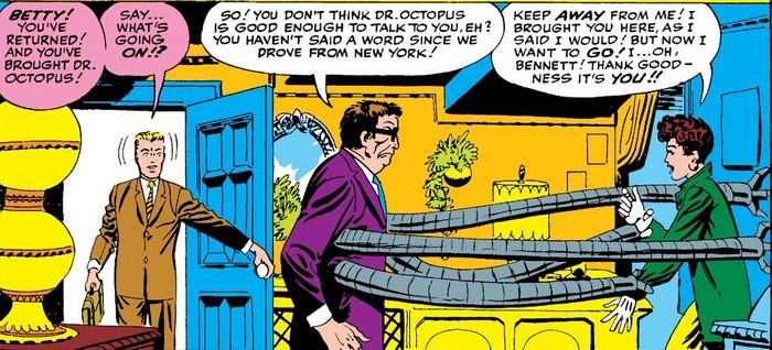 Но жизнь продолжаются, и приключения – тоже, ведь впереди комикс The Amazing Spider-Man #3 за июль 1963 года, и история на сей раз одна – но значительная. Доктор Отто Октавиус, которого коллеги прозвали Доктором Осьминогом за то, что он активно пользуется своим изобретением, механическими щупальцами для работы с радиоактивными материалами, проводит новый эксперимент – и эксперимент приводит к аварии. В результате аварии щупальца намертво прикрепляются к позвоночнику Отто, а сопутствующая этому радиация ушатывает его мозг, в результате чего до того просто заносчивый, надменный и хамовитый учёный становится полным мудаком. И теперь он может контролировать щупальца силой мысли без необходимости нажимать кнопочки на поясе! Первым делом Отто захватывает больничку, в которой проснулся – и Джеймсон отправляет туда Питера Паркера, чтобы тот пофотографировал «Доктора Осьминога».