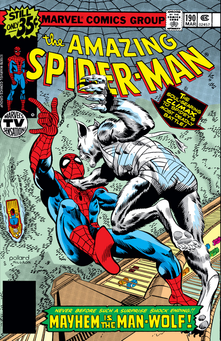 Вот и докатились до комикса, на котором эту часть подборки пора бы завершить – Amazing Spider-Man #165 за февраль 1977 года, от тех же Лена Уайна и Росса Эндрю. Паучье Чутьё ведёт Дружелюбного Соседа к тайной лаборатории, в которой он сталкивается с таинственным врагом. Враг пускается наутёк, стараясь не палиться, Спайди – за ним. А тут оказывается, что на врага этого также охотятся два взаимозаменяемых агента Щ.И.Т., но они и Человека-Паука не против ушатать (напомню – официально Спайди всё ещё убийца честного бизнесмена Нормана Осборна). Паучку приходится замотать агентов в паутину. Врагу удаётся скрыться. Спайди возвращается домой, переодевается в Питера Паркера и наезжает на Флэша Томпсона. Мол, «Чел, ЭмДжей – моя девушка, не подкатывай к ней». Флэш, как ни странно, оказывается значительно более адекватным, чем в ранних выпусках комикса. «Эй, бро, всё понимаю. Твоя девушка – твои проблемы. И так-то это она ко мне подкатывает преимущественно, просто до того я был не против. Если продолжит подкатывать – попрошу, чтобы больше так не делала. Ты мой друг и я тебя уважаю».
