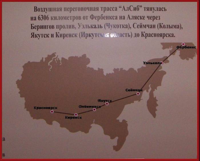К осени из нескольких вариантов выбрали маршрут: Аляска – Берингов пролив – Чукотка – Якутия – Красноярск. Далее самолеты можно было доставлять Транссибом, да и сеть аэродромов становилась гуще. В числе преимуществ маршрута были наличие на нем относительно крупных населенных пунктов и устойчивая антициклональная погода на большей части трассы.