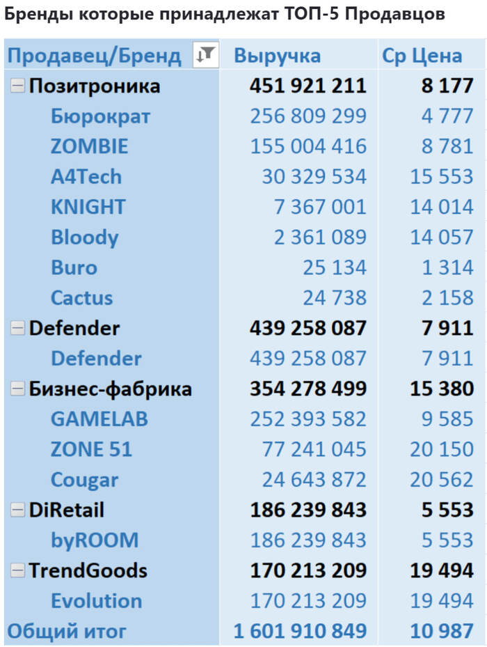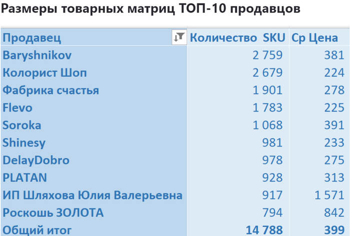 - Продавец Фабрика счастья (ТОП-2 в 2023 году по выручке) является крупнейшим продавцом товаров без указания бренда.