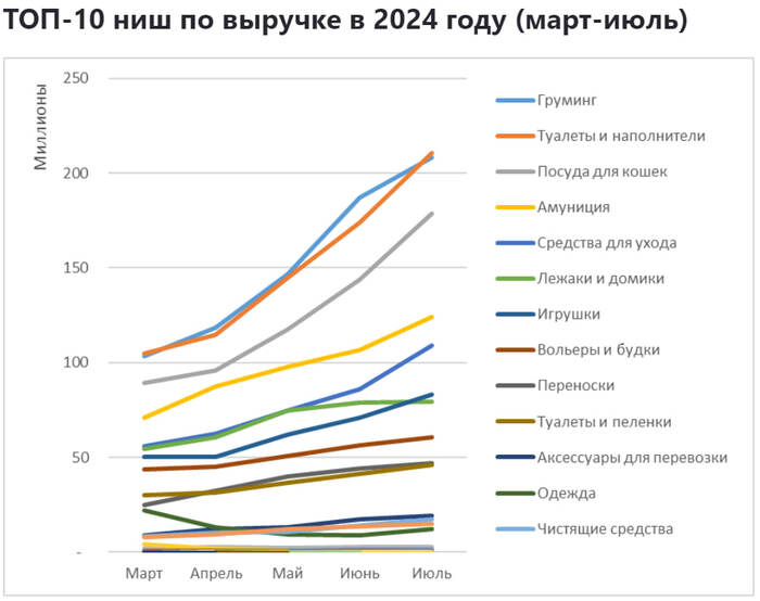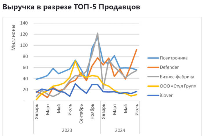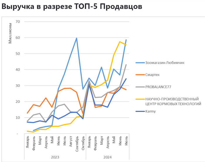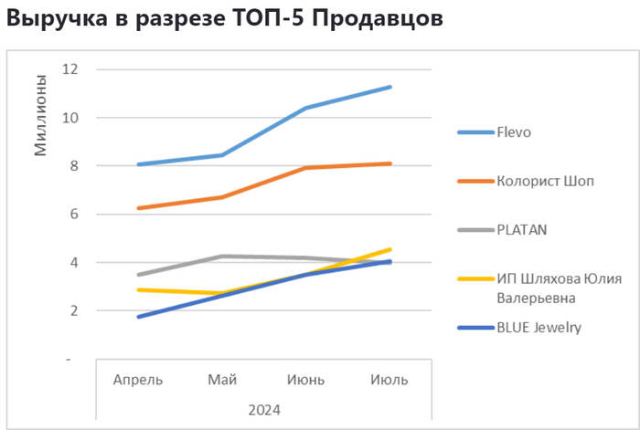 💵Выручка в категории в 2023 году составила 11,4 млрд руб., а за 7 месяцев 2024 года 6,8 млрд. Период за который смотрим категорию - с января 2023 по июль 2024 включительно.