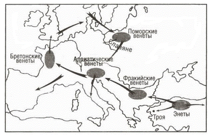 7. Становится ясным казус вендов, виндов, индов, венетов, Венейи, Вены, Венеции. Это не славяне и балты украли имя у "кельто-иллиро-италиков", а различные племена брали себе крутое имя бывших КШКБТ, чтобы казаться принадлежащими к сильному племенному союзу. Кельты, захватывая Европу в период своей экспансии (700-ые года до нэ.), использовали это древнее имя.