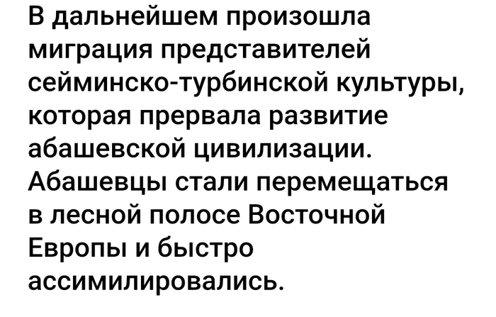 Снова вернёмся в пункт 4."Откуда есть пошли арии" и взглянем на абашевскую археокультуру. Гм... Маловата, я вам скажу!