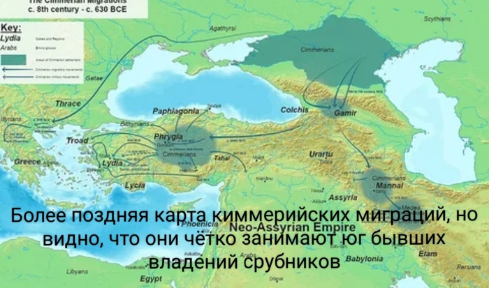 А вот когда, арийские протогосударства рухнули, волосовцы (захватившие их земли с севера) почти мгновенно перешли в бронзовый, а затем в железный века. Вот тут им понадобилось достаточно резко расширить словарь. А рядом кто? Кроме недобитых и медленно деградирующих срубников-андроновцев, рядом были новые хозяева юга арийских земель и это были индоиранцы - киммерийцы.
