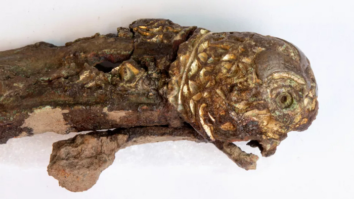 За спиной воина справа свисают ножны (или ещё один меч) с выделяющимся наконечником круглой формы. По словам исследователей, образ воина соответствует описанию внешности кельтов (галлов) у Диодора Сицилийского.