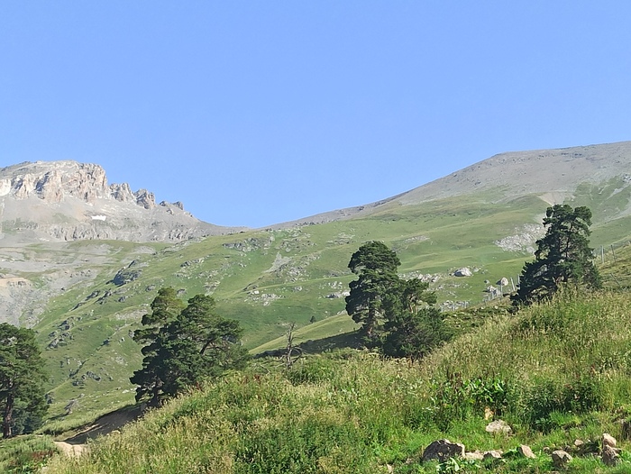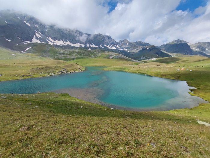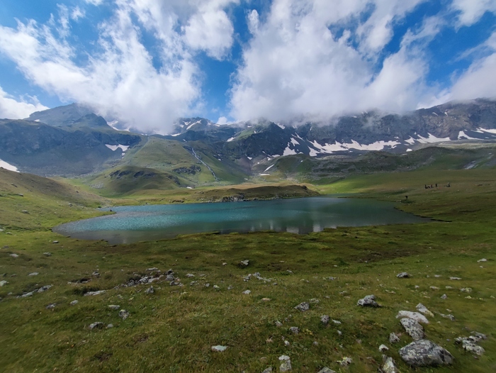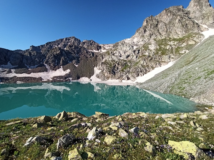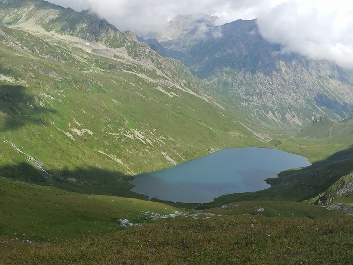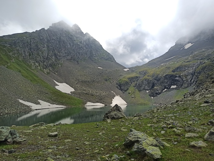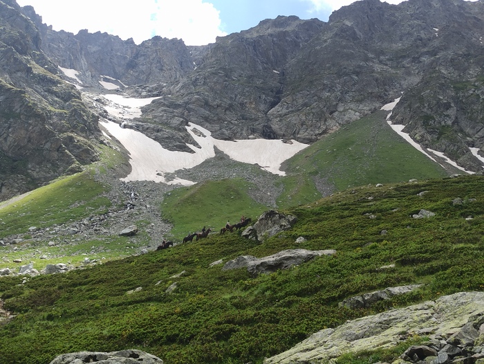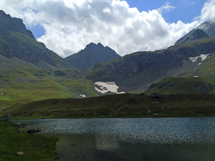 Пейзажи здесь сильно отличаются от пейзажей остального Архыза. Только снег, камень и трава... Нет ни рододендронов, ни буйной растительности. Как будто попал совсем в другие горы...