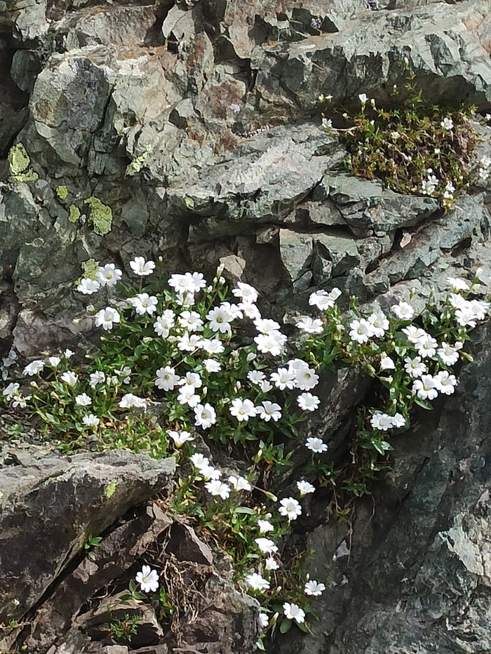 Неожиданная радость: на перевале Агур прямо на скалах цветут цветы.