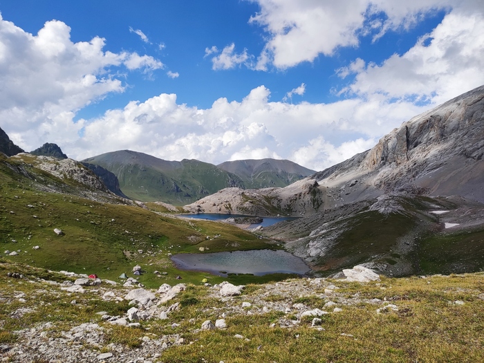 Вид на эти озера неожиданно открывается после того как спустился по тропам по сыпухе на ровную часть Турьего плато.