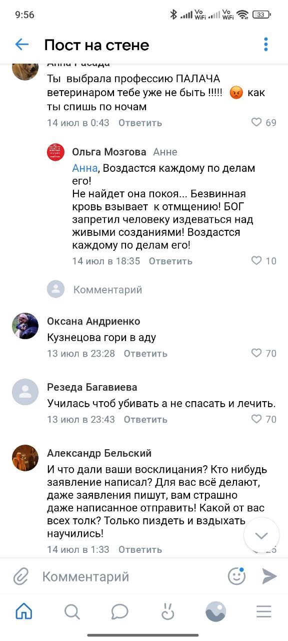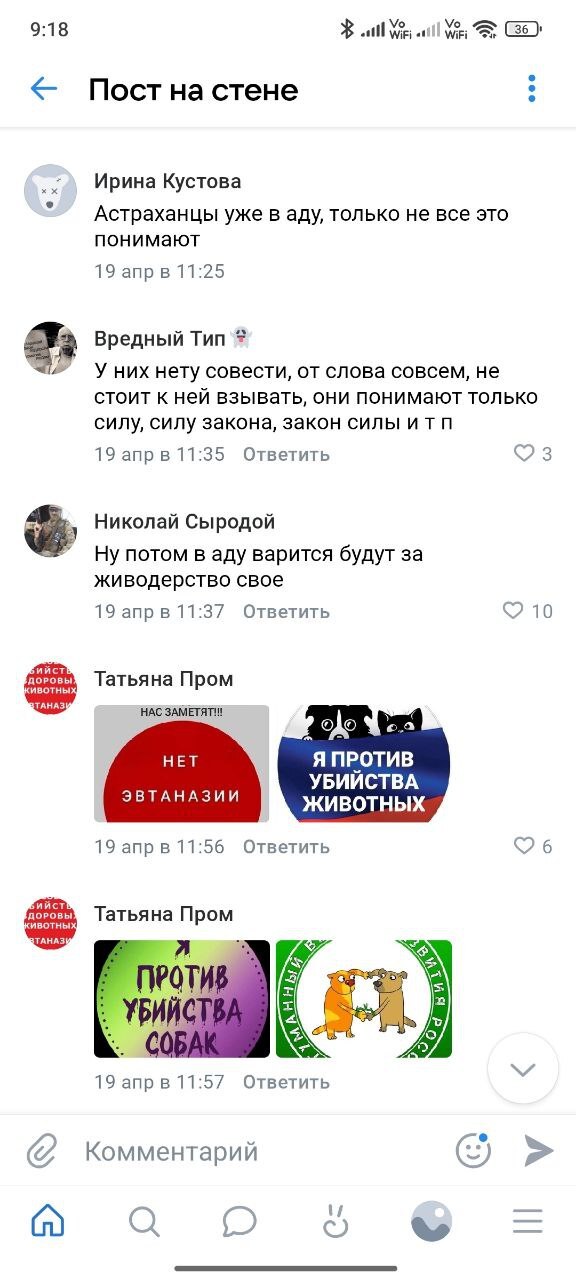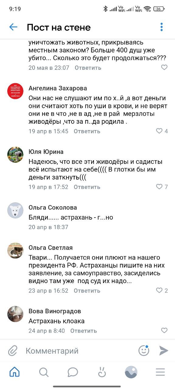Зиберт делает это не просто ради донатов — он намеренно разжигает ненависть. А далее мы видим подобные комментарии в адрес жителей Астрахани, в частности ветеринарного врача, который занимается умерщвлением бродячих собак: