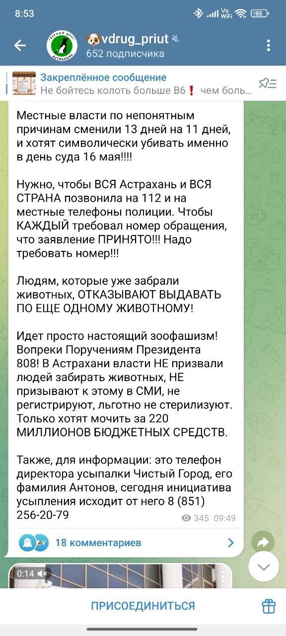 Так вот. В судах, да и на своём паблике ВК и ТГ-канале она совсем не стесняется в выражениях. Например, её цитаты в суде: "Астрахань — живодёрский регион, живодёрское правительство, живодёрские законы". Ну и для наглядности — скрины с её ТГ-канала, и ВК: