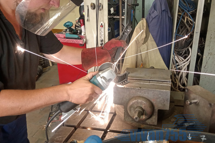 Его тоже надо прорезать в нескольких местах, чтобы было видно, что он полый и внутри проходит стяжной болт. А вал титановый, режется весело, даже от диска по нержавейке быстро остаются «одни шпангоуты»: