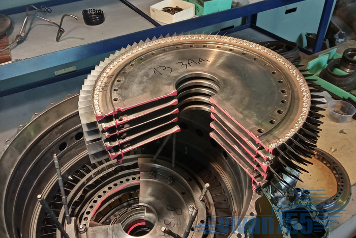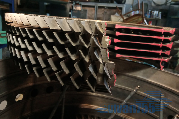 Статорные лопатки ТВД уложены, по краям поставлены распиленные, теперь можно ставить и рабочее колесо: