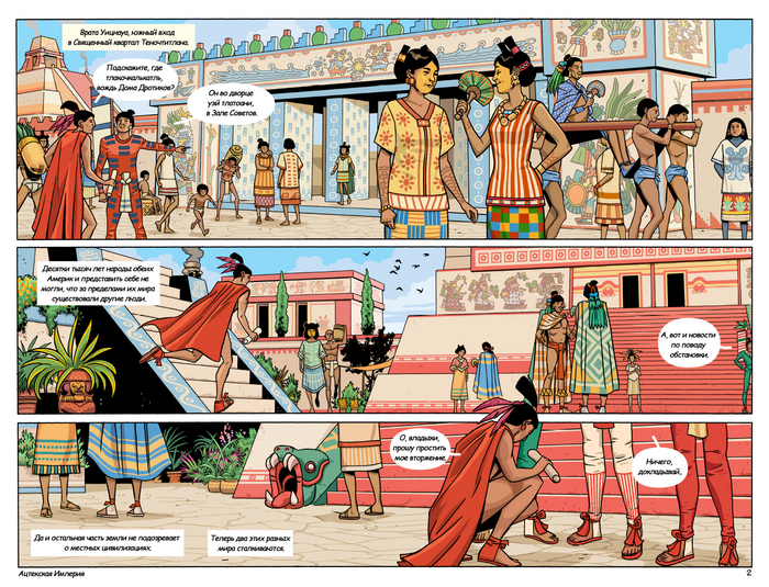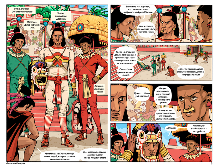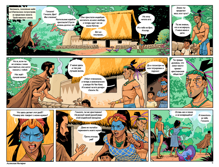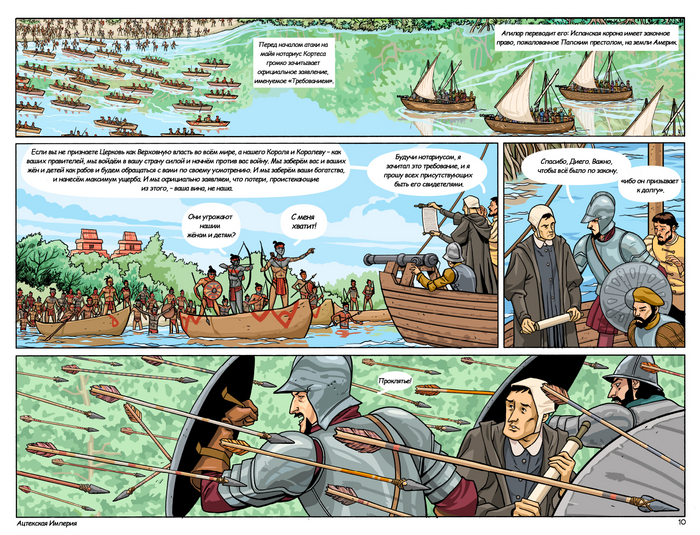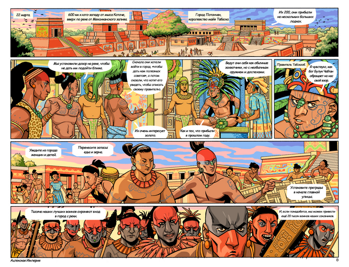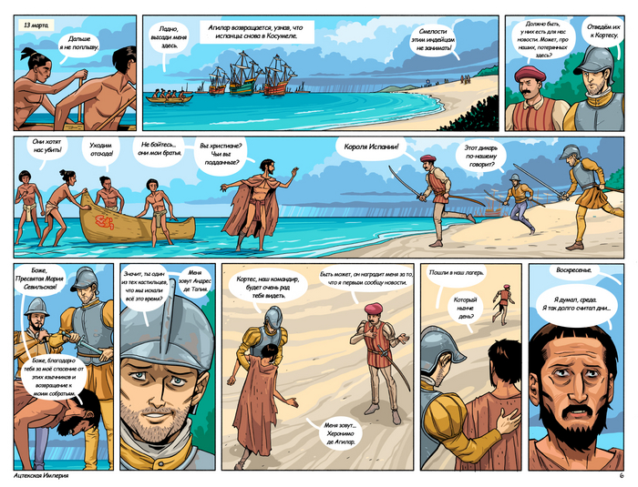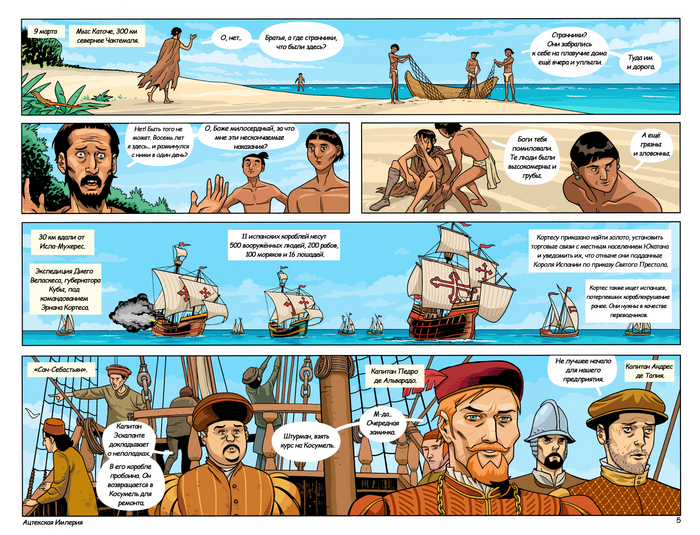 Далее следует обстоятельный рассказ автора комикса о спутницах Кортеса в составе его экспедиции, а также опровержение некоторых мифов о Марине, переводчице Кортеса — прим. mexicalli