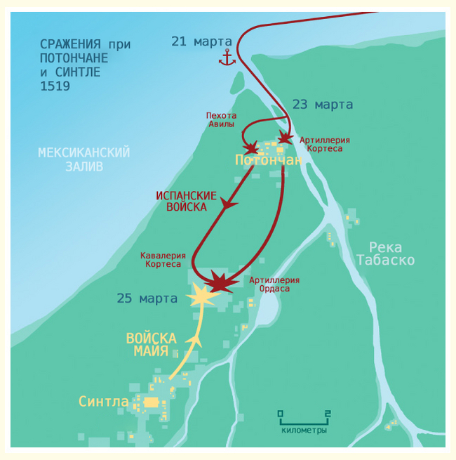 Вот так был взят Потончан, первый город, который Кортес завоевал силой оружия в своей экспедиции».