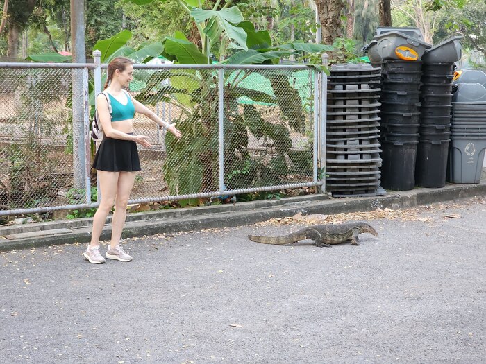 Ещё на подходе в парк мы ловим взглядом первых варанов и хватаем возможность с ними пофоткаться, пока не сбежали. Мы ещё не знаем, что будем встречать их на каждом шагу.
