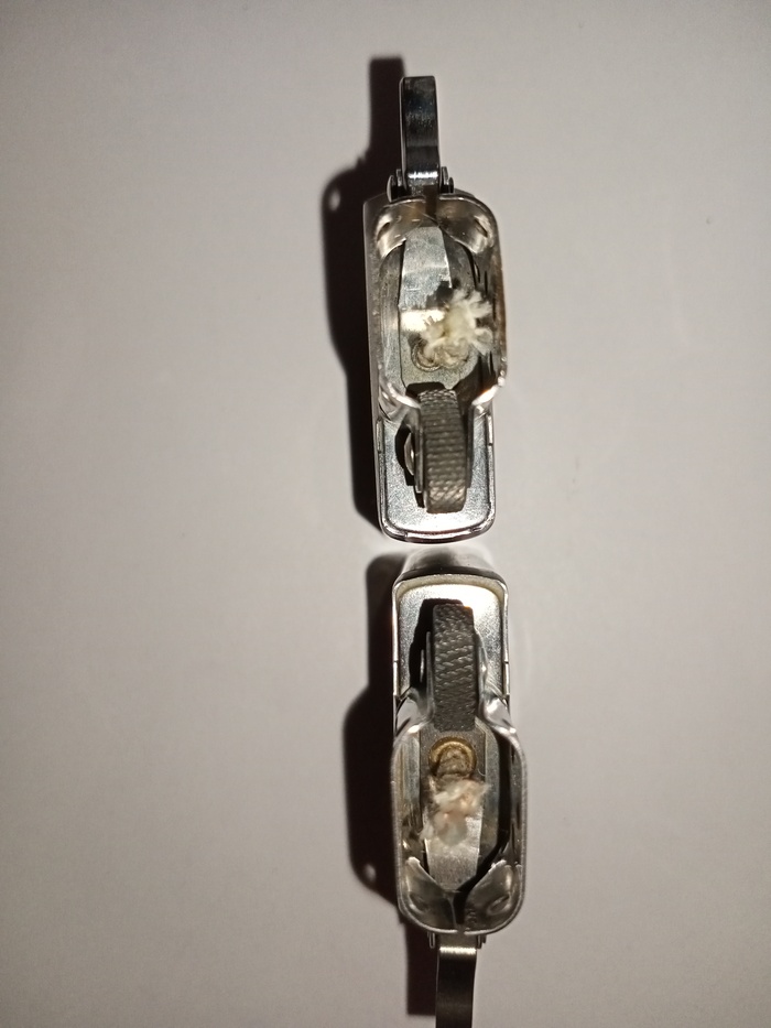 Минус нет ветрозащиты.плюсы лёгкая замена фитиля и ваты,кремния(кресало не является частью корпуса или инсерта),,нет внутреннего инсерта, корпус и есть по сути инсерт.