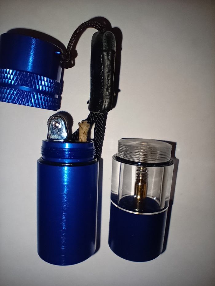 Зажигалки капсулы не предлагаю,их минус неудобства зажигания одной рукой (слишком маленькие) ну и неудобно менять кремень нужна маленькая отвёртка.Хотя сам ношу в наплечной сумке такой набор как НЗ.На постоянке любимая зажигалка имко.