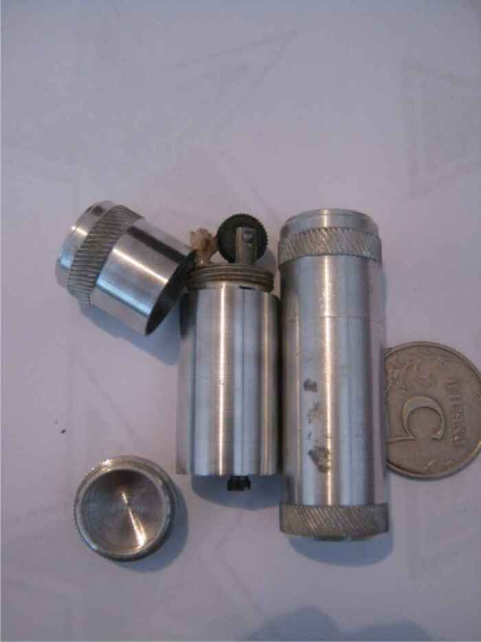 Сама зажигалка заправлялась через нижний клапан на резьбе с резиновым уплотнителем.