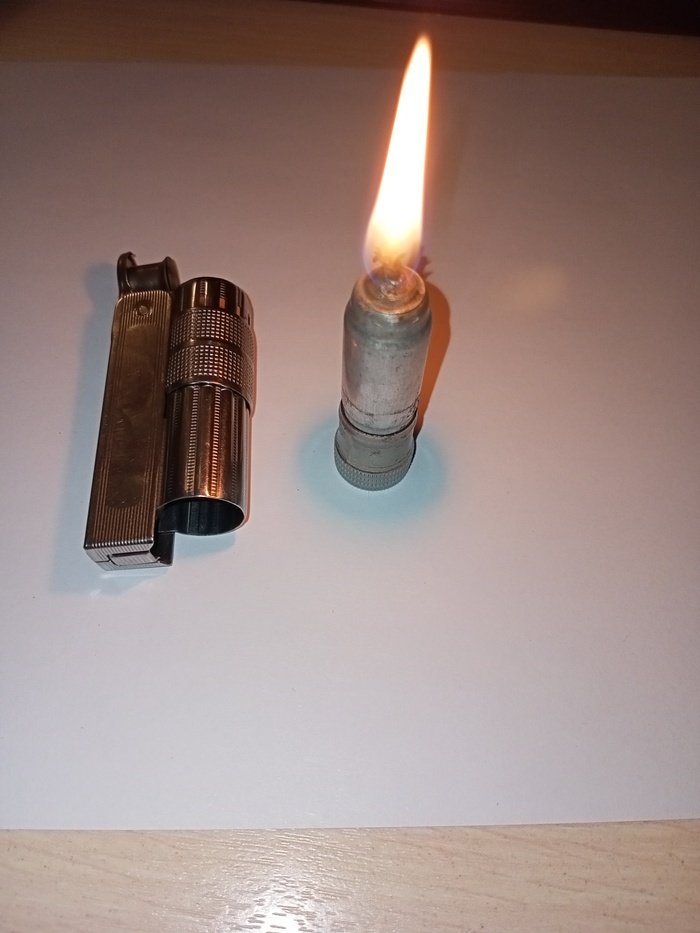 Копия немецких и британских зажигалок,гарантированно зажигается через три года, надёжность дублированная двумя креслами с разной насечкой. Минус её вес.нашел в архиве своих покупок заправлял всего один раз . топливо держится до сих пор.