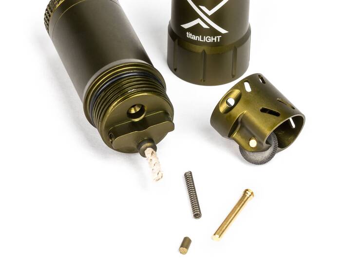 Американская бензиновая зажигалка Exotac titanLIGHT разработана специально для работы в сложных походных условиях. Фирменные вентиляционные отверстия под пламенем уменьшают воздействие ветра и обеспечивают огнезащиту.Кремневое колесо долговечно, но даже если оно выйдет из строя, его легко заменить. Модель не боится дождя и погружений в воду на глубину до 1 метра. Тщательно обработанная алюминиевая конструкция герметична и не подвержена коррозии.Верхняя крышка легко открывается и закрывается одной рукой.