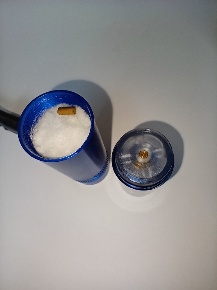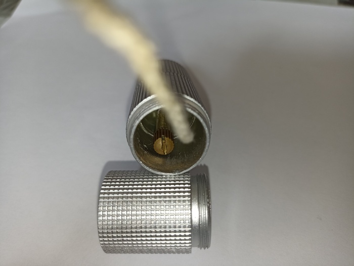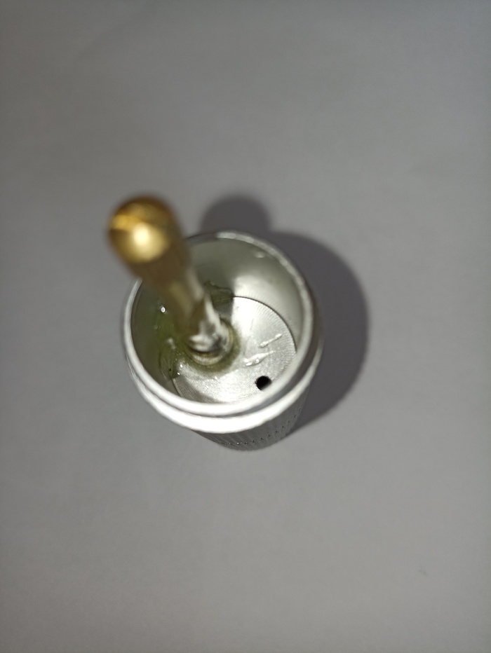 Вставляем фитиль, кресало и набиваем ватой(кресало я посадил на эпоксидную смолу, хотя и так сидит плотно)