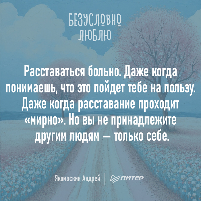 13 YakoAndro Психология | Psychology Серия Безусловно люблю Расставаться больно 8 месяцев назад Показать полностью 1 [моё] Психология Мысли Совет Картинка с текстом Отношения Книги Цитаты Ещё 0