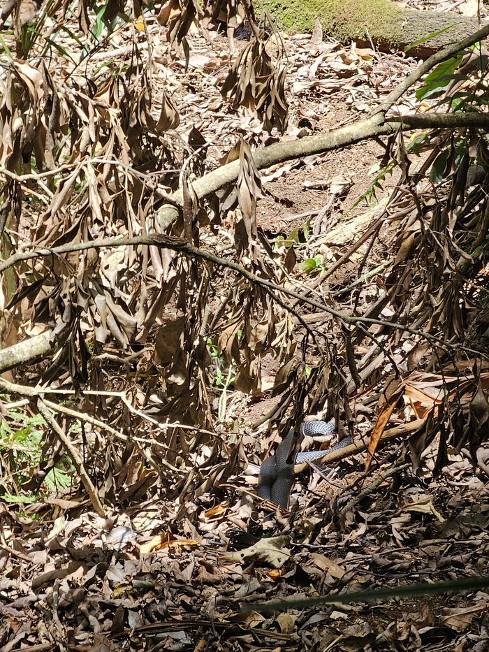 На второй день я всё же встретился с рейнджером, но ничего кроме приветствия он мне не выразил. По пути мне попалась ещё одна змея, на это раз точно ядовитая - краснобрюхий черный аспид (типа нашей гадюки), но она бы в отдалении, и не помешали друг другу.