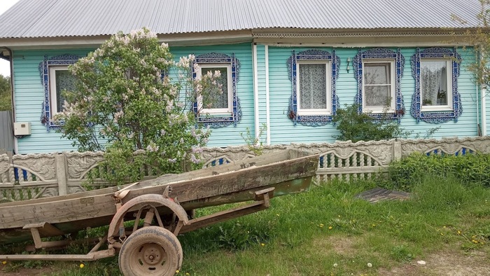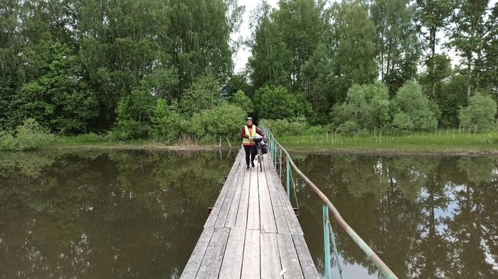 Вечереет, вокруг глушь, деревни в пару домов и те в стороне от дороги. Решаю срезать через одну из таких, в ней должен быть мостик через речку и тропинка в большое село. Удача! Мост есть, воды набрали, даже успели заскочить в магазин.