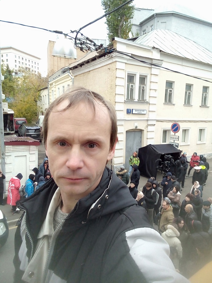 В одном из дублей Сергей мне сказал, что мы проехали мимо Павла Деревянко, который снимал нас на телефон. Кого только не встретишь на улицах Москвы. 😄