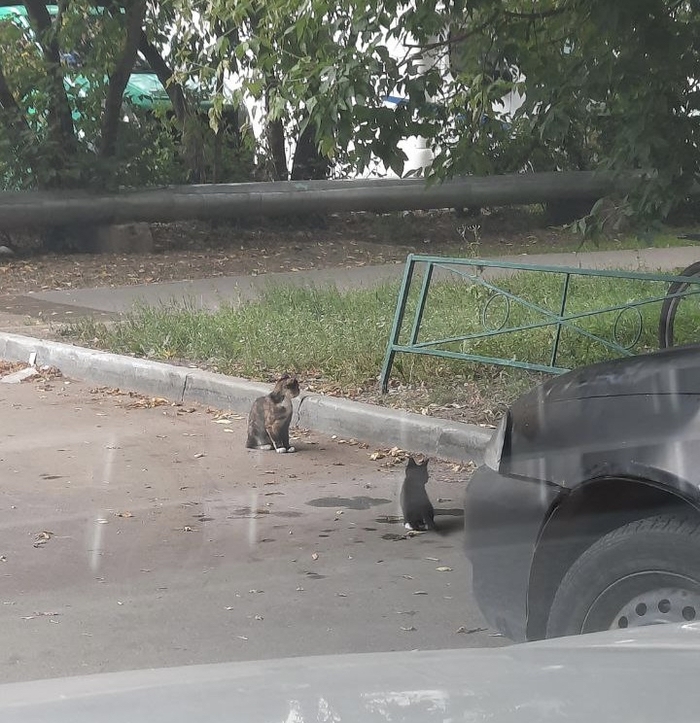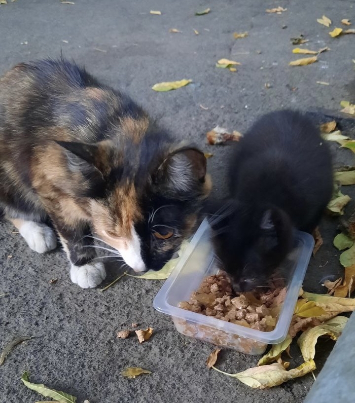 Раньше её тут точно не было. Молоденькая совсем. Видимо, сама не далеко ушла по возрасту от котёнка, а уже мать.