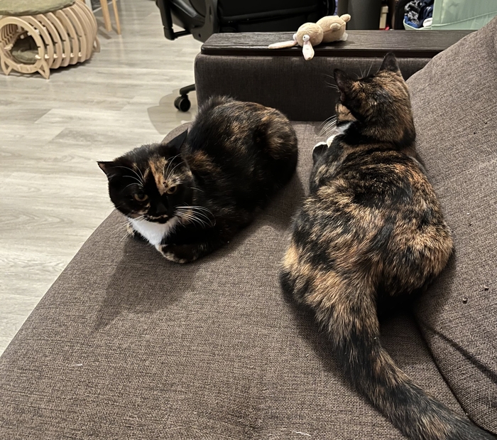 Со второй кошкой особой любви нет, иногда могут лупануть друг друга, но не сильно. Иногда выглядят подружками, но это такая редкость.