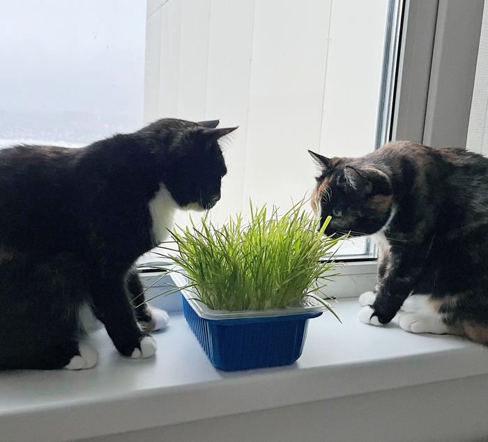 А это Ася и Триша пришли инспектировать первую партию моего земледелия 😼