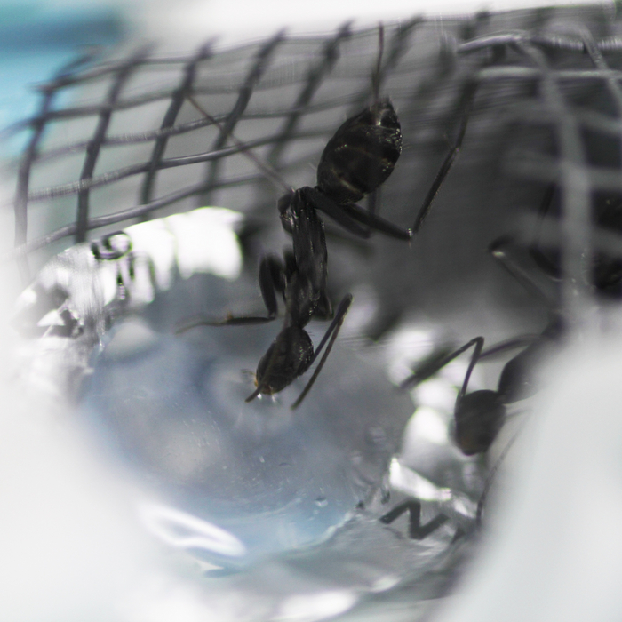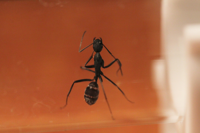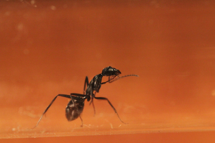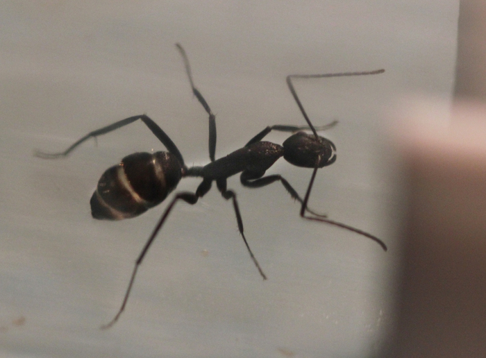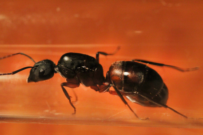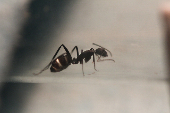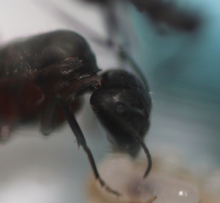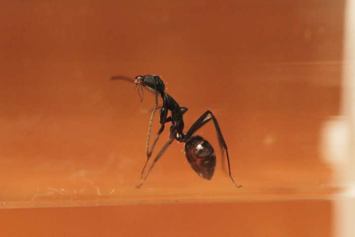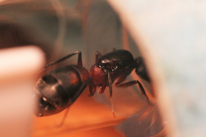 Муравьи сразу порадовали меня своим изящным стройным видом, а матка в придачу - внушительным размером и красивым красноватым оттенком эпинотума, стебелька и брюшка. Рабочие имеют матовый пепельно-черный окрас, так как являются первичными. Однако, совсем слабенькое "кровавое" пятнышко проглядывается на брюшках. Интересно, когда начнут выводиться особи с полным "боевым окрасом".