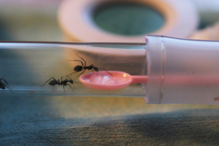 В первый же день муравьи были угощены раствором глюкозы (капнул 2 мл, из которых, конечно же, муравьи выпили от силы один, остатки были убраны).