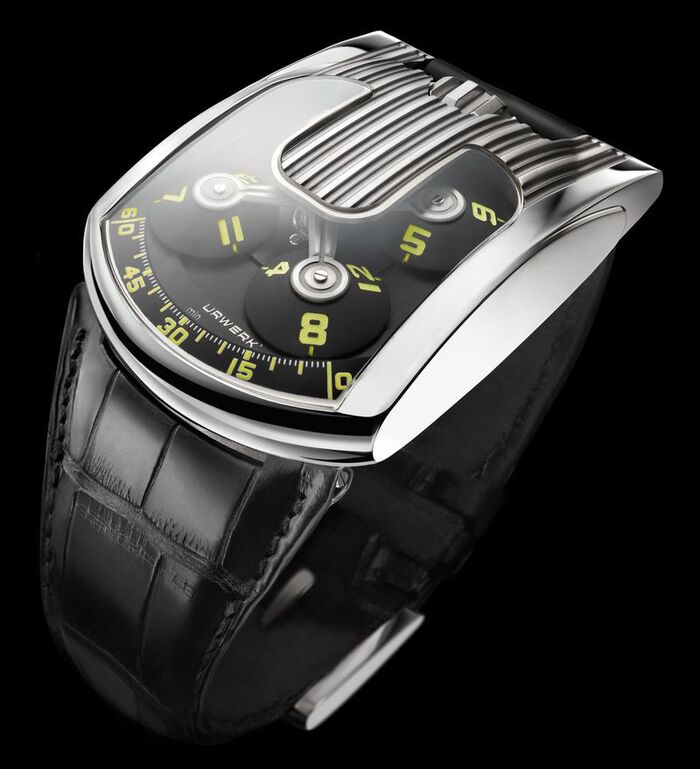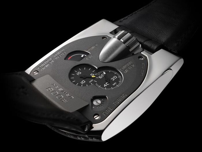 Компания Urwerk славится своими футуристическими часами и бешенными ценниками. Среди прочих моделей она до недавнего времени выпускала часы UR-103 с внешним регулятором точности хода. Этот регулятор располагается на задней крышке и обозначен как «Fine Tuning».