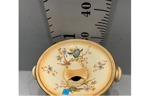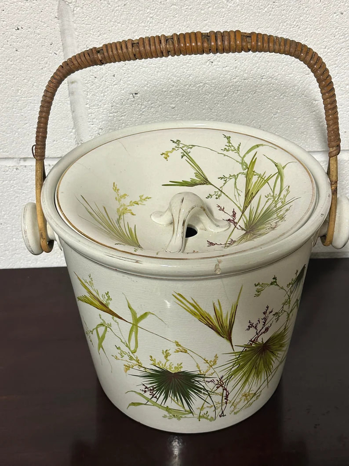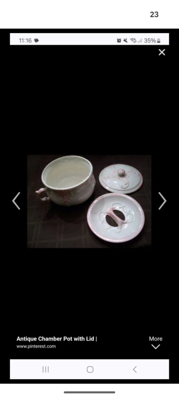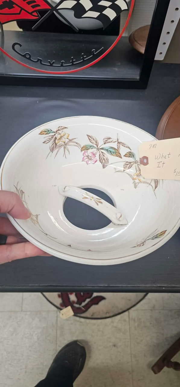 А это дополнительная крышка от ведерка с помоями в викторианскую эпоху. Вот помылся человек, воду из умывального тазика легко слить в ведро, а при нужде крышку можно и поднять легко. Впрочем, никто не мешал это и на горшок надеть, тогда она служила плевательницей.