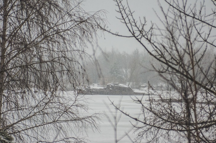 Третий день моего самого продолжительного пребывания в ЧЗО был целиком и полностью посвящен Припяти. Днем раньше навалило снега, но дороги в зоне чистили более-менее исправно, поэтому до Припяти доехали без проблем, а вот в самом городе пришлось ходить по колено в снегу.