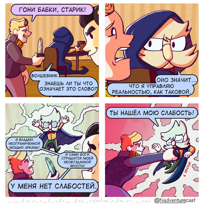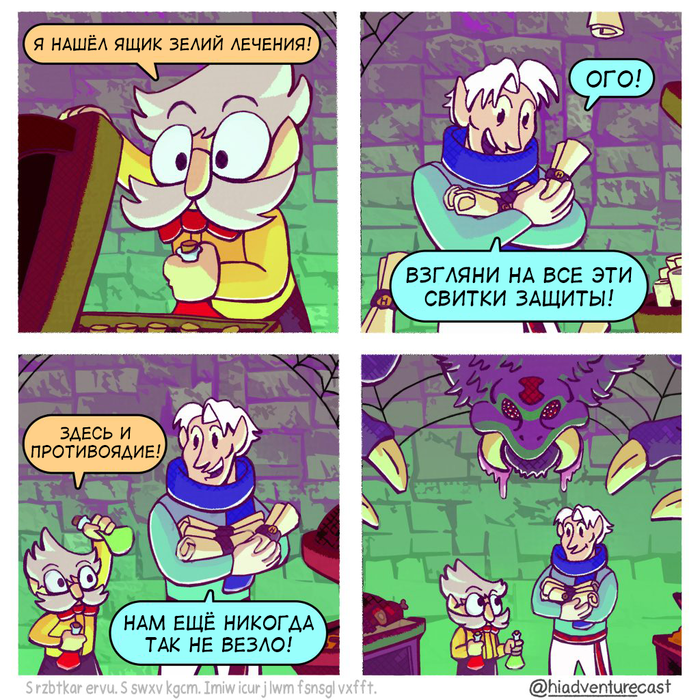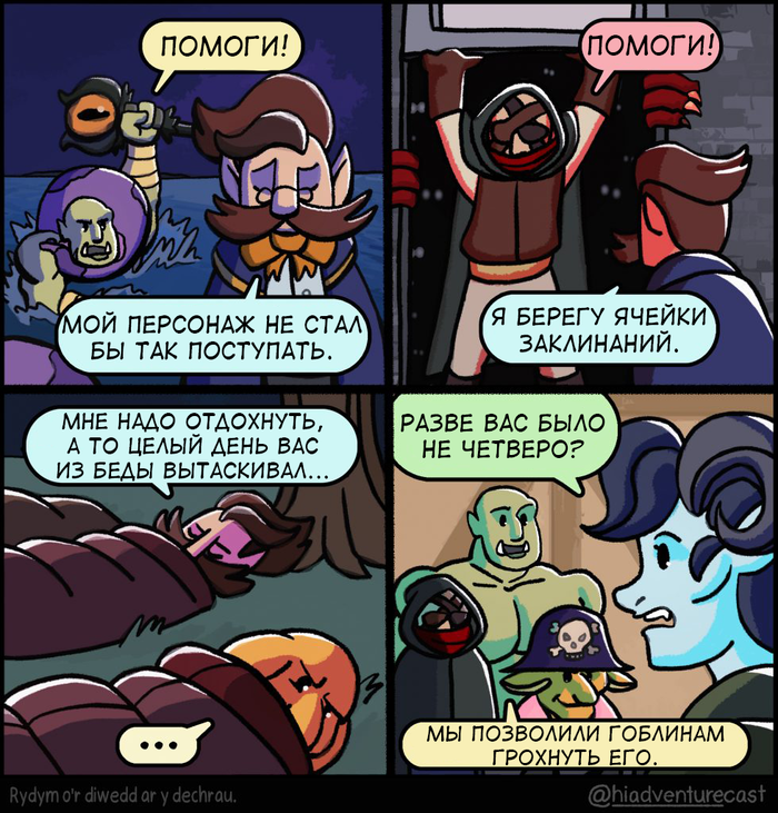 ** "Я берегу ячейки заклинаний" - все маги в D&D имеют ограничение на количество накладываемых заклинаний в день. Например, волшебник первого уровня может наложить всего два заклинания в день. После длительного отдыха (целая ночь), он просыпается и все эти слоты становятся свободны снова. Беречь их порой имеет смысл, ожидая что в следующей локации могут быть опасности посерьёзнее, но доводить до абсурда, как в комиксе, тоже не надо : )