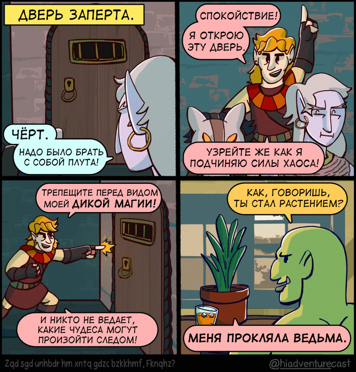 Накладывая заклинание, чародеи дикой магии также должны бросить кубик на результат последствий - и они как раз непредсказуемы, так как дикая магия очень нестабильная, и чародеи как бы не контролируют её исход. В данном случае, после открытия двери, дикая магия превратила чародея в цветок, но он стесняется признаваться, как именно это произошло.