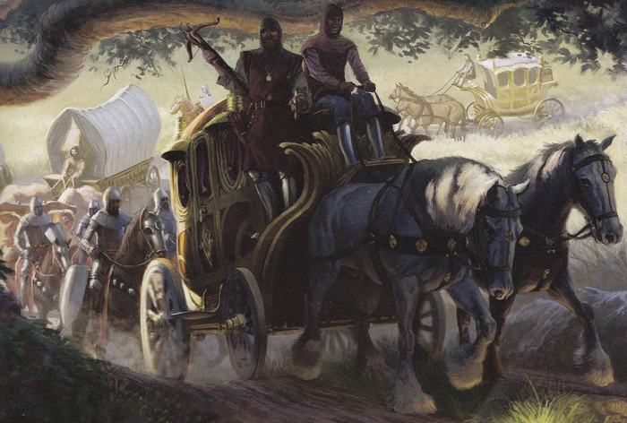 Пожелав друг другу удачи, мы попрощались с Валвуром и отправились по сырой темной улице. Когда мы отошли уже достаточно далеко от особняка, я обернулся и увидел, как караванщики затаскивали гробы в небольшую пристройку возле дома. Спустя, буквально, секунд 20, караванщики начали загружать на повозки гробы из свежей древесины, я не придал этому значения и шел дальше.