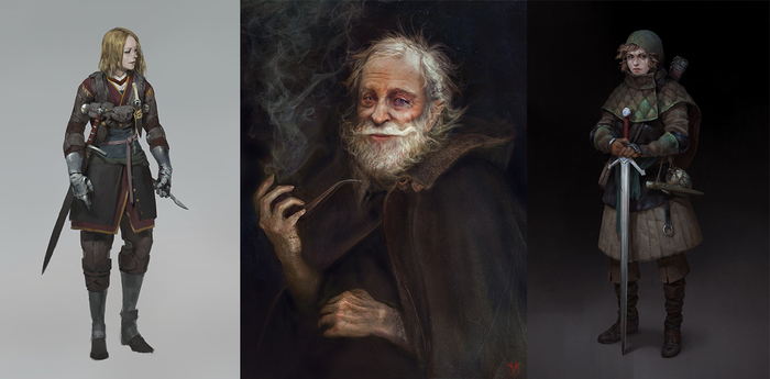 Ночь была в самом разгаре: общий зал был заставлен столами, за которыми сидело несколько компаний, стоял густой запах жареного мяса, эля и огня, что горел в камине. За барной стойкой протирал кружки молодой парень с повязкой на глазу (видимо поспорил), на кухне варганил повар орк, а официант периодически разносил готовые блюда посетителям, одним их которых был подозрительный седой мужчина, он что-то бормотал мечу, что был у него в руках.
