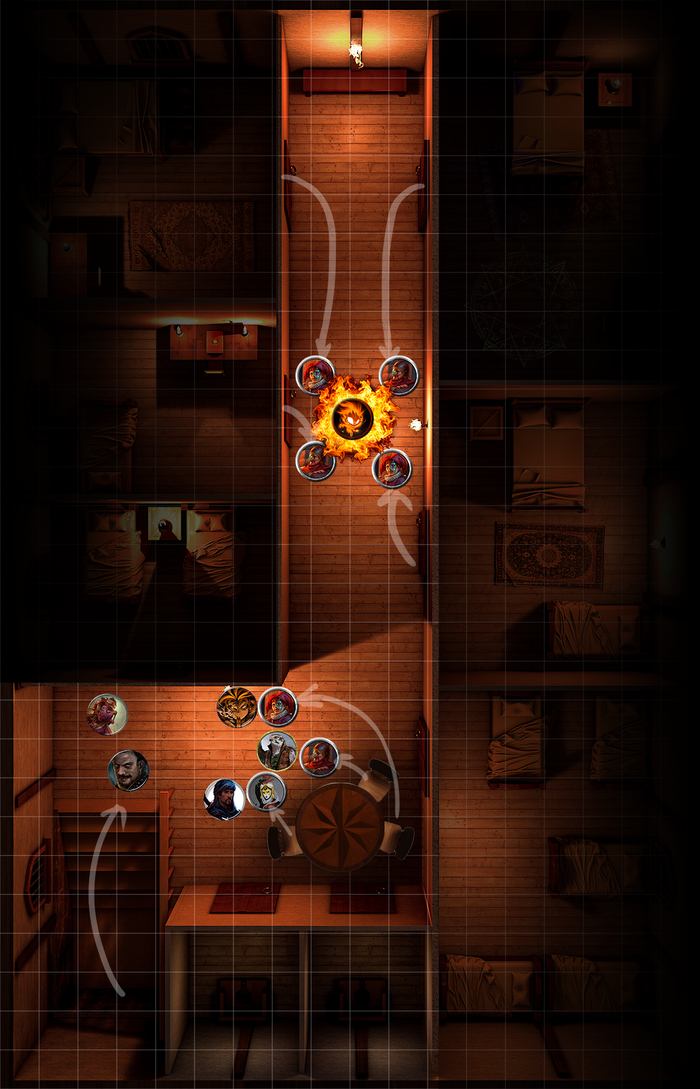 Орум бросился прямо в гущу, отвлекая на себя арлекина, Хорт побежал за ним и вцепился в горло ближайшего к нам клоуна и вырвал оттуда большой кусок. Клоун охранник, истекая кровью, упал на пол. Из комнат дальше по коридору начал раздаваться шум. Я не очень сообразительный и тоже побежал на арлекина. В этот момент, она обезоружила птичку и откинула его клинок дальше по коридору. Тамас отстреливался из арбалета, Солмир запрыгнул на стол и начал размахивать глефой, прибив второго клоуна. Арлекин вцепилась в меня и сильно меня потрепала. Когда Орум отскочил за своим мечом из комнат на шум вышло еще четверо в масках - его окружили.