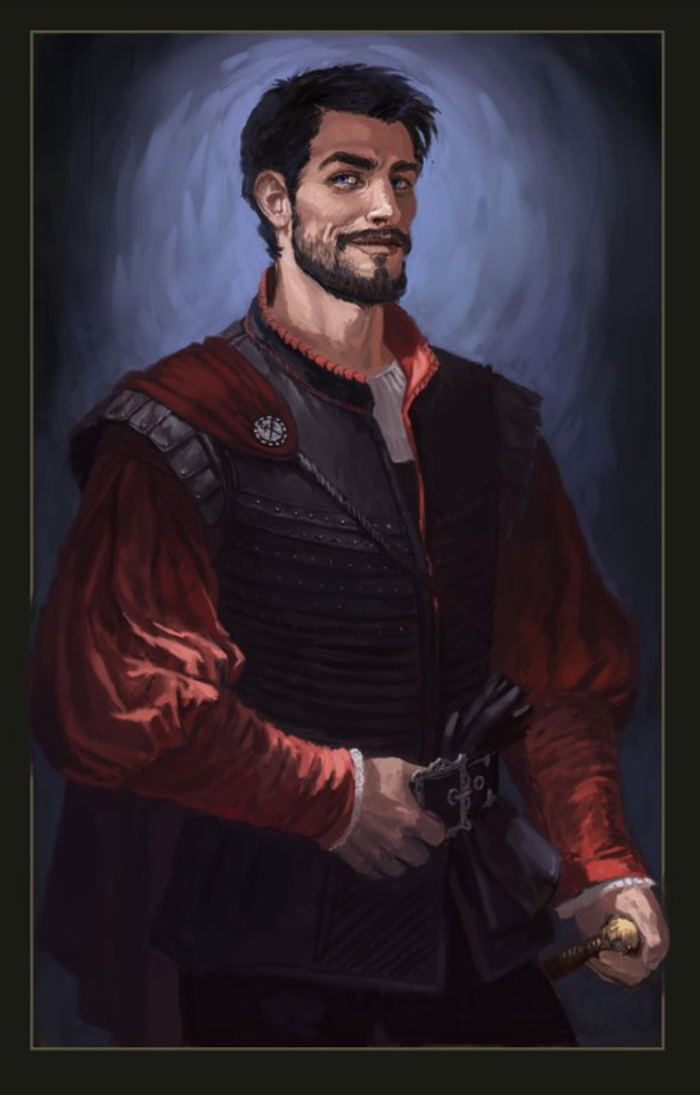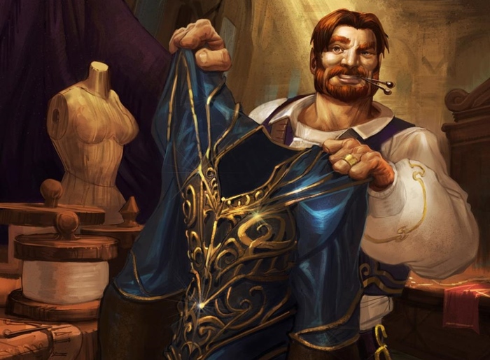 (На втором этаже Солмир и Орум в кабинете (стол с часами, картины и прочие элементы роскоши) встретили Мристара - средних лет мужчину в дорогой рубашке, с короткими черными волосами, ухоженной бородой. Вслед за нашими переговорщиками в кабинет зашло еще двое упитанных “дворецких” с кинжалами за поясом. Мристар с улыбкой на лице начал с ними разговор.