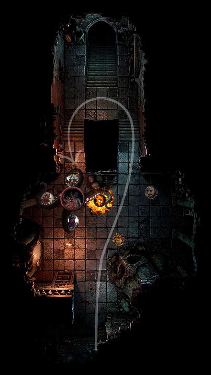 У спуска к лестнице Зальтебар остановился и сказал, что на этом его полномочия всё и предупредил, что дальше будут люди, с которыми нам самим придется разобраться. Тамас попросил его не держать на нас зла, ведь мы просто наемники, которым заплатили. Орум вернул серебряный значок, Зальтебар кивнул и ушел.