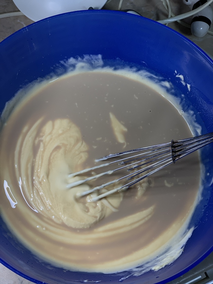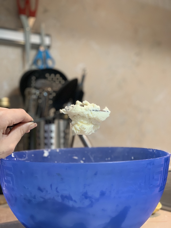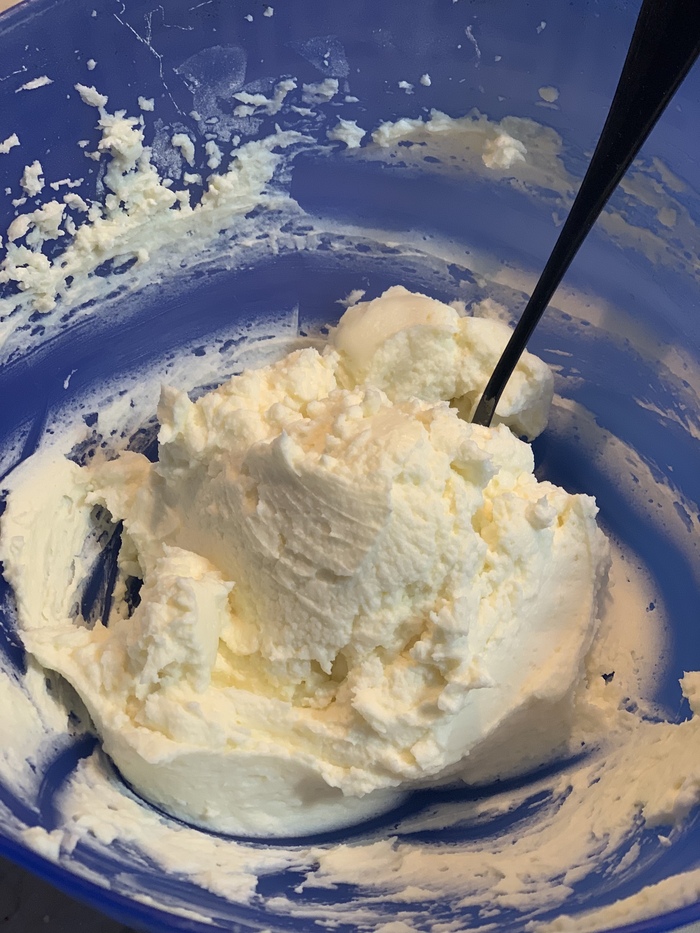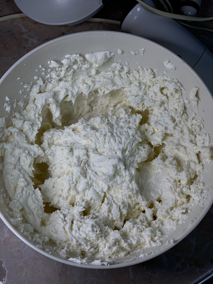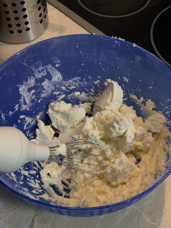 Беремся за крем. Закидываем все (помним, что сливки тоже должны быть холодными?), в миску и взбиваем до плотности. Главное – поймать момент и не перевзбить, чтобы сливки не разложились на плесень и на липовый мед масло и сыворотку.