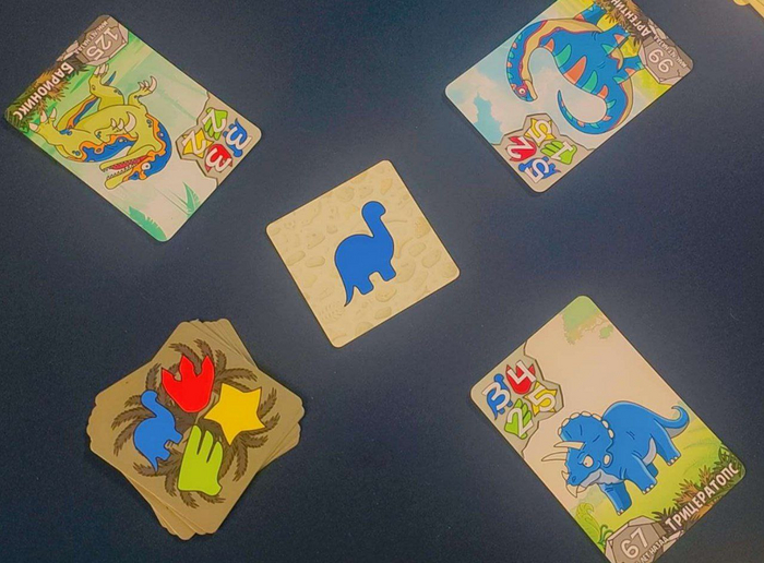 В любом случае, партии в Дино-шоу настолько быстрые, что на проигрыши просто некогда обижаться. Оформление игры красочное и привлекательное, на каждой карточке изображён индивидуальный забавный динозаврик с личными характеристиками. А еще в каждой коробочке с игрой встречаются отличные друг от друга фигурки Первого игрока. Нам пока что удалось найти 4 разных варианта.