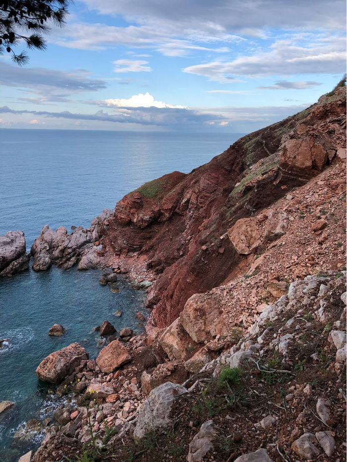 Походив там по разным местам, мы наткнулись на место на пляже, куда было довольно трудно залезть. Но нам это удалось. Оказалось, что мы случайно забрели на маленький нудистский пляж, о чём рассказал какой-то русскоязычный турист-нудист. На нас озирались недоброжелательно, поэтому мы поспешили удалиться.